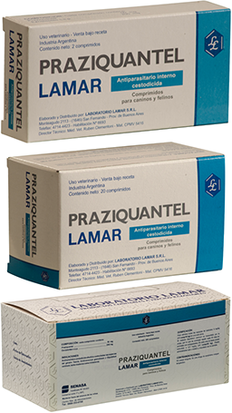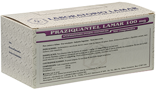 Praziquantel 50mg: Cajas de 2, 20 y 200 comprimidos.