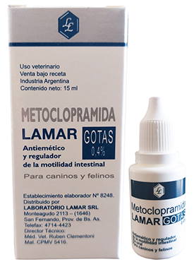 Observaciones: Contraindicado en vólvulo e intususcepción gástrica o intestinal. No asociar con anticolinérgicos que neutralizan su acción a nivel digestivo. En perros en tratamiento anticonvulsivante puede causar crisis.