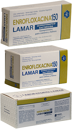 Cajas de 10, 100 y 500 comprimidos (enrofloxacina 150 y 250mg).