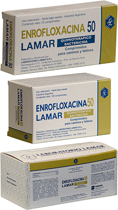 Cajas de 12, 120 y 360 comprimidos (enrofloxacina 50mg).
